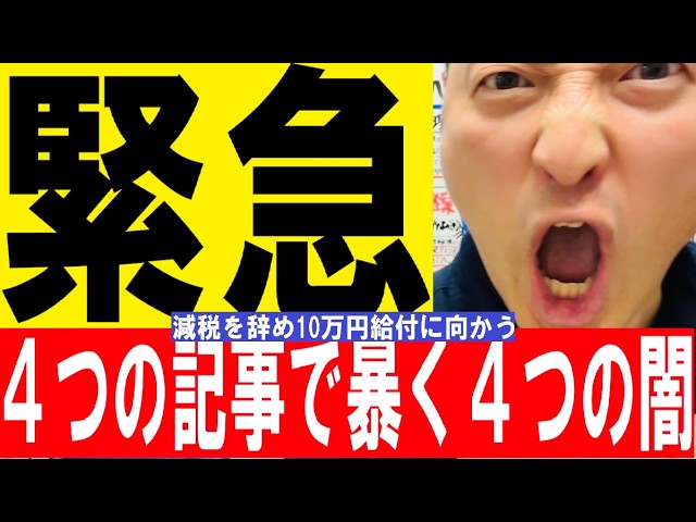 0:00「減税派を排除し10万円給付に舵を切るシナリオと4つの闇」の真相 2:11【今の状況】公約に掲げた消費税減税をやらず給付金に向かう動きがある 3:17【速報】減税4つの記事で暴く4つの闇 4:07【10万円給付になる闇の事情】①~⑩ 8:17高市政権が維持できなければ「国民にとってもクソもない」 8:42【10万円給付したい高市政権の裏事情】①~④ 11:31【海外からの圧力】IMF