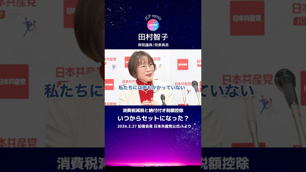 2026.2.27 日本共産党の田村智子委員長の記者会見の切り抜きです。本編は日本共産党公式チャンネルで見てあげてね😉 推しの政治家スピーチの切り抜きはじめました。パフォーマンスだけの政治家のはやりません。むしろ落選させたい。 もう誰か任せにしていたらこの国が終わります。差別やデマが蔓延し、戦争する国になり、環境保全や気候危機対策はどんどん後退となる。そんなの望んでない。