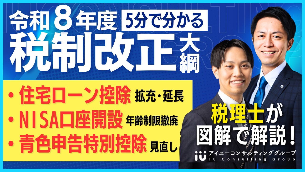 #税理士 #税理士法人 #税制改正 #税制改正大綱 #令和8年度税制改正 #令和8年度税制改正大綱 #税 #税制 #士業 #会計 #税理士事務所 #相続 #事業承継 #確定申告 #個人事業主 #フリーランス #税理士試験 #税理士受験生 #ビジネス #保険 #コンサルタント #コンサルティング #税金 #アイユーコンサルティング #年収の壁 #NISA #暗号資産 #仮想通貨 #住宅ローン #相続税 #生前贈与 #節税 #税理士試験 #贈与税 #インボイス #お金