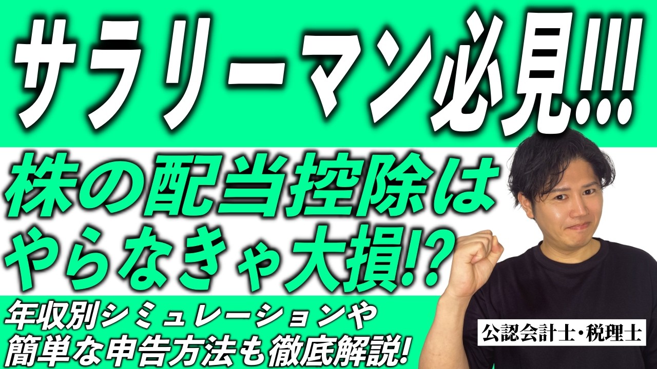 続きを読むこんにちは!公認会計士・税理士の小松ゆうまです! サラリーマンや個人事業主で株の配当を受け取っている方必見、配当控除の有利不利から自分でできる簡単な申告方法まで税理士がわかりやすく解説します。 0:00 ダイジェスト 0...