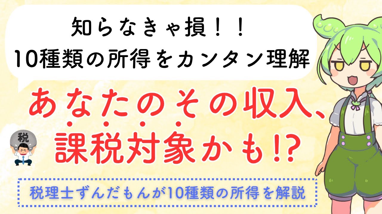 続きを読む現役の税理士が監修しています。 ずんだもんが、所得税のキホンとして「10種類の所得」と「所得税率」を解説します。 00:00 オープニング 00:37 10種類の所得 01:46 利子所得 03:16 配当所得 05:...