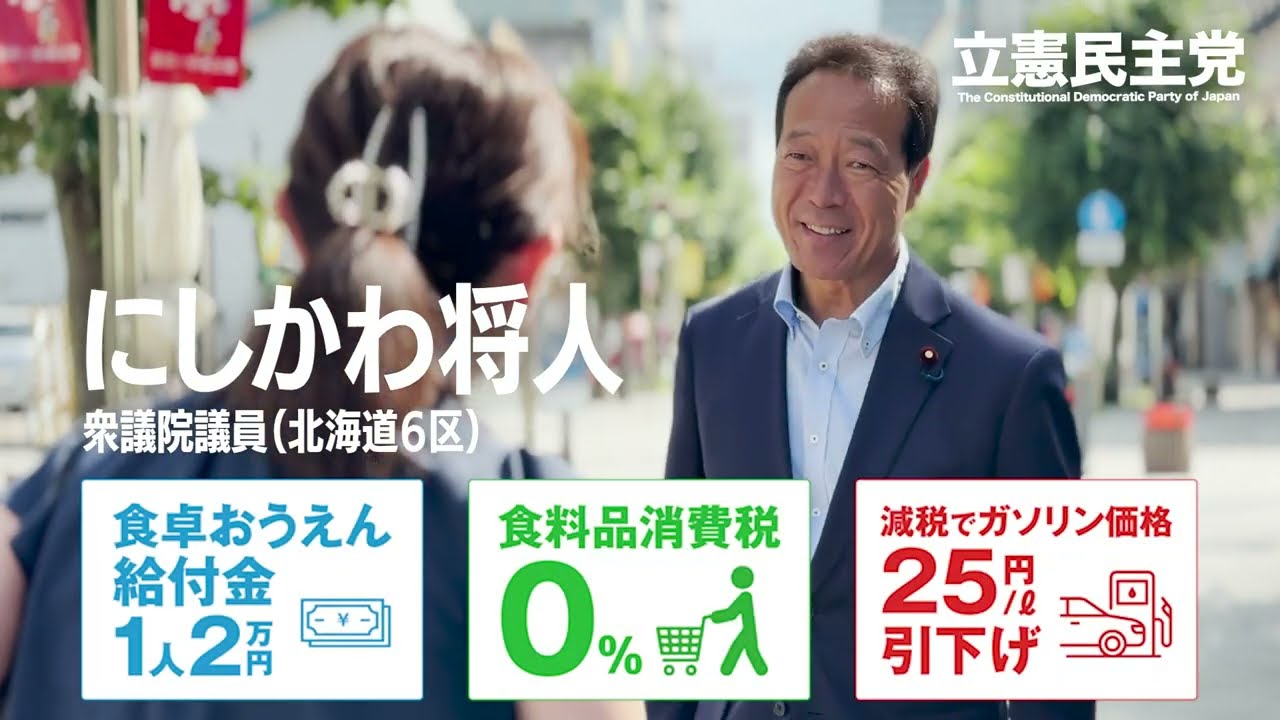 動画 実現できます。消費税減税。 立憲民主党衆議院議員の「にしかわ将人」です。 借金をせずに、消費税対策を行います。 食料品に係る消費税0%を早ければ来年4月から実施できます。 負担軽減効果は全体で5兆円、 国民1人あた...