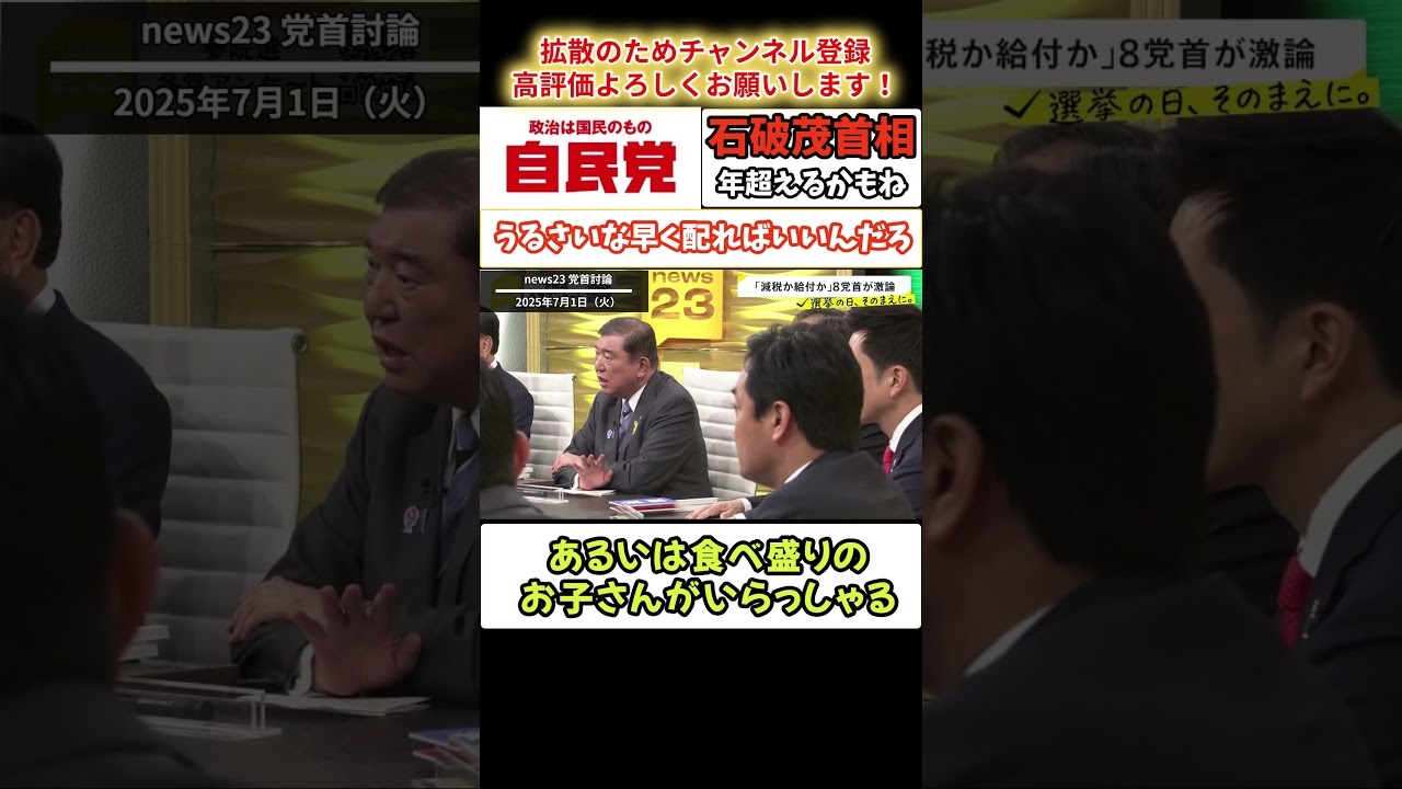 続きを読む📺【動画の概要】 「納税者には減税で応えるべき」——玉木雄一郎議員が、非課税・高齢者世帯に偏る給付政策に疑問を呈し、現役世代への減税こそが筋だと主張。一方、石破茂氏は「困っている人へ迅速に届く給付」が重要...