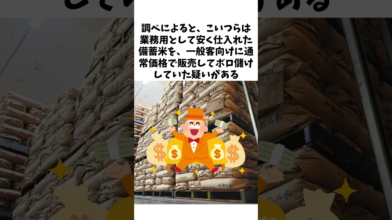 続きを読む岐阜県で、災害時や物価安定のために保管されている「政府備蓄米」を勝手に売りさばき、私腹を肥やしていた疑いで、小売店経営者ら2人が書類送検! 安く仕入れた備蓄米を通常価格で販売しボロ儲け。 国民の税金で確保された大事な非常...