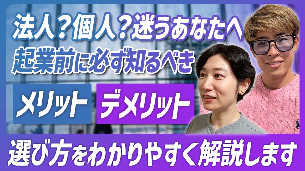 続きを読むこちらの動画はyoutubeから埋め込み引用しております。 【徹底比較】起業するなら法人?個人事業主?どっちが正解? 「起業するなら、法人と個人事業主どっちがいいの?」 これは、独立を考えている人が必ず悩むテーマです。...