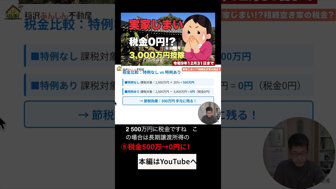 #空き家対策 #不動産売却 #3000万円特別控除 相続したご実家、売却時の税金が【0円】になるかもしれない制度をご存知ですか? 知らないだけで500万円も損してしまう可能性がある「3,000万円特別控除」。 この特例に...