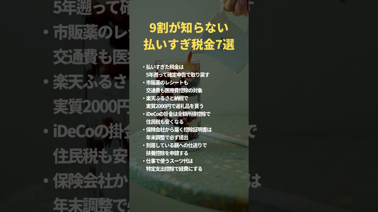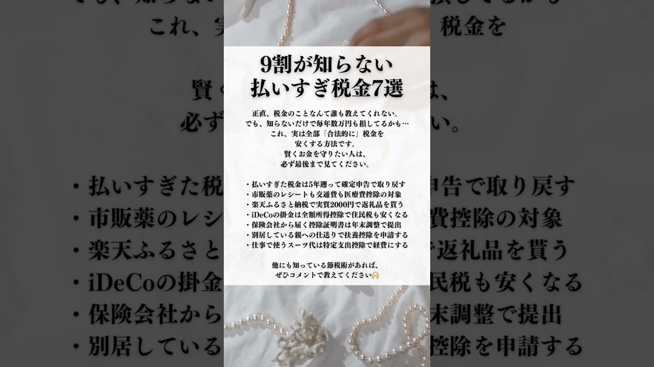 正直、税金のことなんて誰も教えてくれない。 でも、知らないだけで毎年数万円も損してるかも… これ、実は全部「合法的に」税金を安くする方法です。 賢くお金を守りたい人は、必ず最後まで見てください。 動画で紹介した7つの節税...