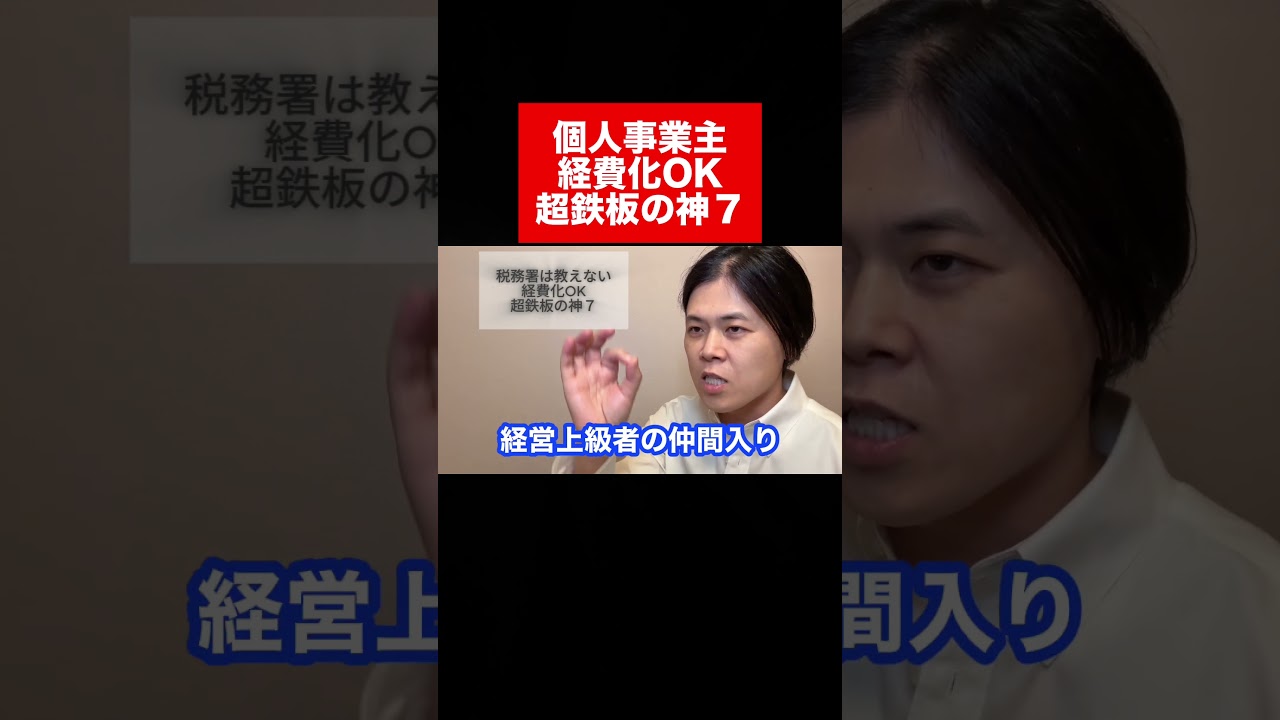 こちらの動画はyoutubeから埋め込み引用しております。 【税理士が教えない】個人事業主の経費化OK超鉄板の神7を徹底解説! 経営10年の経営者が、税理士からも教えてもらったことがない経費の鉄板テクニックを公開。 個人...