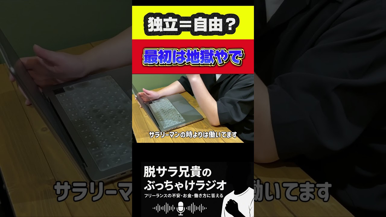 こちらの動画はyoutubeから埋め込み引用しております。 脱サラ/フリーランス/個人事業主/法人化をテーマに、 実体験に基づくリアルな情報を発信しています。 独立すると“自由な時間とお金”が手に入る? もちろん頑張れば稼げる。 でも最初は、サラリーマンより働く。 週1休み、朝から晩まで。 自由は“後から掴むもの”やで。 ・脱サラ後の働き方 ・個人事業主から法人化までの流れ