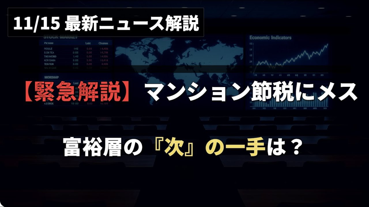 #マンション節税 #富裕層 #資産防衛 富裕層の相続税対策として注目されてきた「マンション節税(タワマン節税)」に、ついに規制のメスが入りました。これにより、従来の節税スキームは終わりを迎える可能性が高まっています。 しかし、これは単なる「増税」なのでしょうか? この動画では、今回の規制が不動産市場(デベロッパー、J-REIT、金融機関)に与える具体的な影響をセクター別に徹底分析。「節税