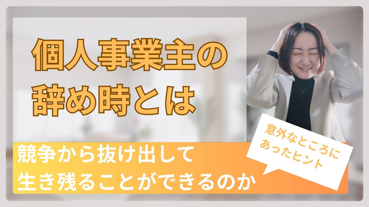 こちらの動画はyoutubeから埋め込み引用しております。 ▼ 今回はこんな話 ・個人事業主ってずっと続けられるのか…継続率の実態とは ・個人事業主に戦力外通告はない!だからこそ自分で判断に向き合う必要がある!? ・辞める時は〇〇になった時 ・競争から抜け出して生き残るためのヒントは〇〇 などなど… --- こんにちは! 言語化パートナーのにしざわゆきこです。 わたしは普段、「じぶん事業