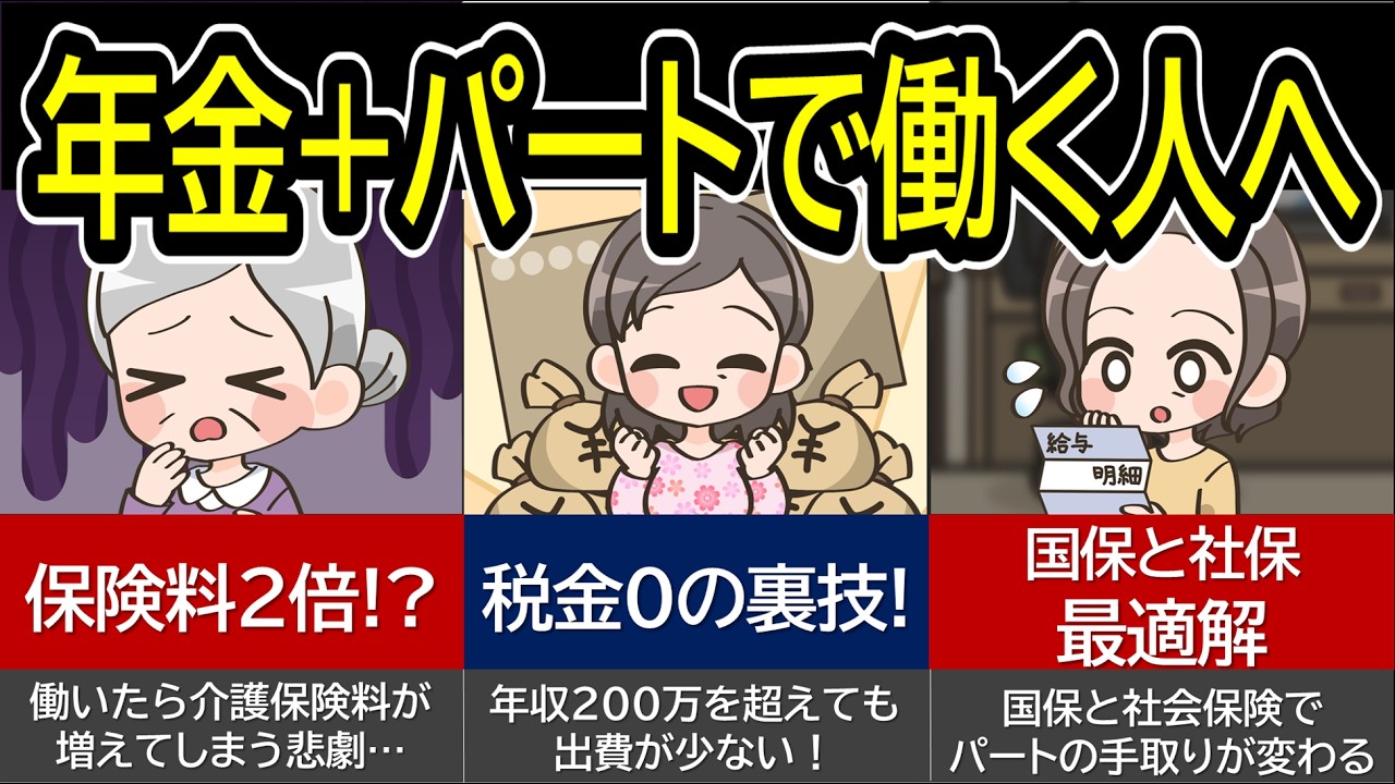 年金をもらいながら60歳以降もパートやアルバイトで働くひとに知っておいて欲しい知識について解説しています。年金と給与をもらいながら税金が非課税(0円)になる年収、国民健康保険と社会保険の手取りの差、介護保険料が増えてしまうルールなどまとめて解説。扶養に入れる年収についても触れています✨ ■■■■■■■■■■■■ 年収と住民税についてはこちら↓ ▼【年金と給与】住民税非課税世帯