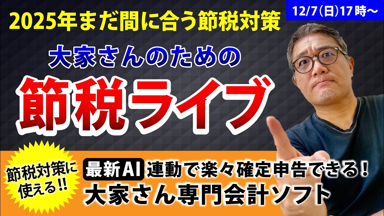 無駄な税金は一切払いたくないという不動産投資家のために、今からでも間に合う25年度の節税対策ノウハウを公開します。節税に役立つ大家さん専用の会計ソフトの紹介もあります。 ★2025年12月31日迄期間限定!「会計職人」が最大38%OFFになるキャンペーンはこちら→ https://www.superfp.com/kaikei ★ご出演いただいた渡邊先生の情報はこちら Knees bee