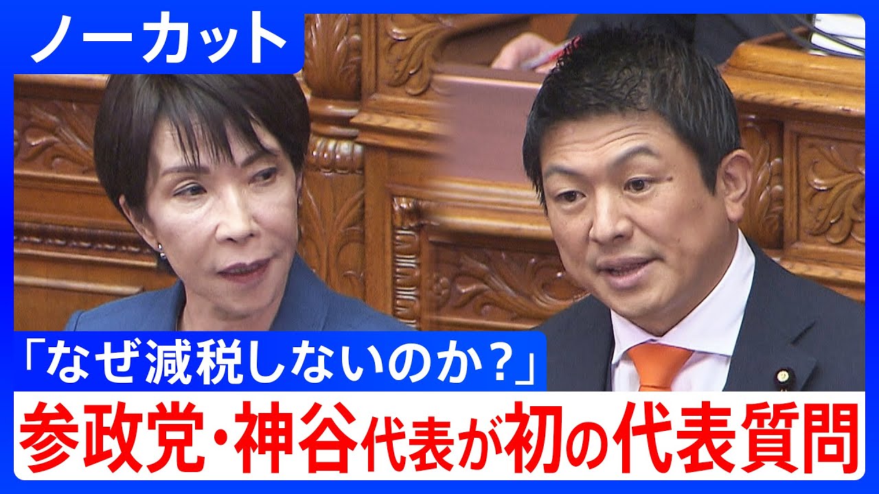 国会では6日、参政党・神谷代表が初の代表質問に臨み、「なぜ消費税の廃止・減税をしないのか?」など、高市総理を追及しました。 ノーカットでお伝えします。 ▼TBS NEWS DIG 公式サイト https://newsdig.tbs.co.jp/ ▼チャンネル登録をお願いします! http://www.youtube.com/channel/UC6AG81pAkf6Lbi_1VC5NmPA