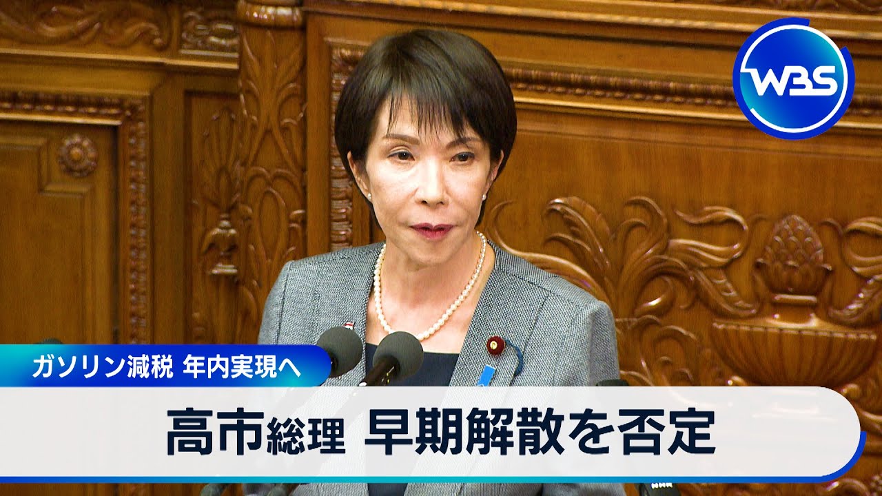 早期の解散・総選挙に否定的な考えを示しました。高市総理大臣は、衆議院本会議で行われた代表質問で「今とにかく急ぐべきは物価高対策だ」と強調しました。具体的な物価高対策としては、寒さが厳しい冬の間に電気・ガス料金の支援などを行う方針を改めて示しました。一方、自民党と立憲民主党など与野党の6党は、ガソリン税に上乗せされている1リットル当たり25.1円の暫定税率について、年内に廃止することで正式に合